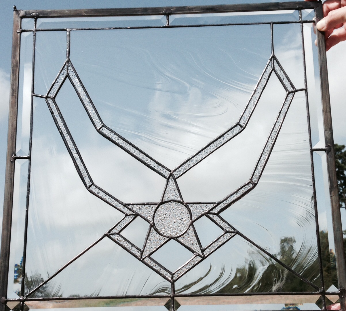 This entry was posted on August 21, 2014 by alliekayglass. It was filed under Military Emblems, Stained Glass and was tagged with airforce, Broque, clear, Crushed, Emblem, Glass, ice, stained.