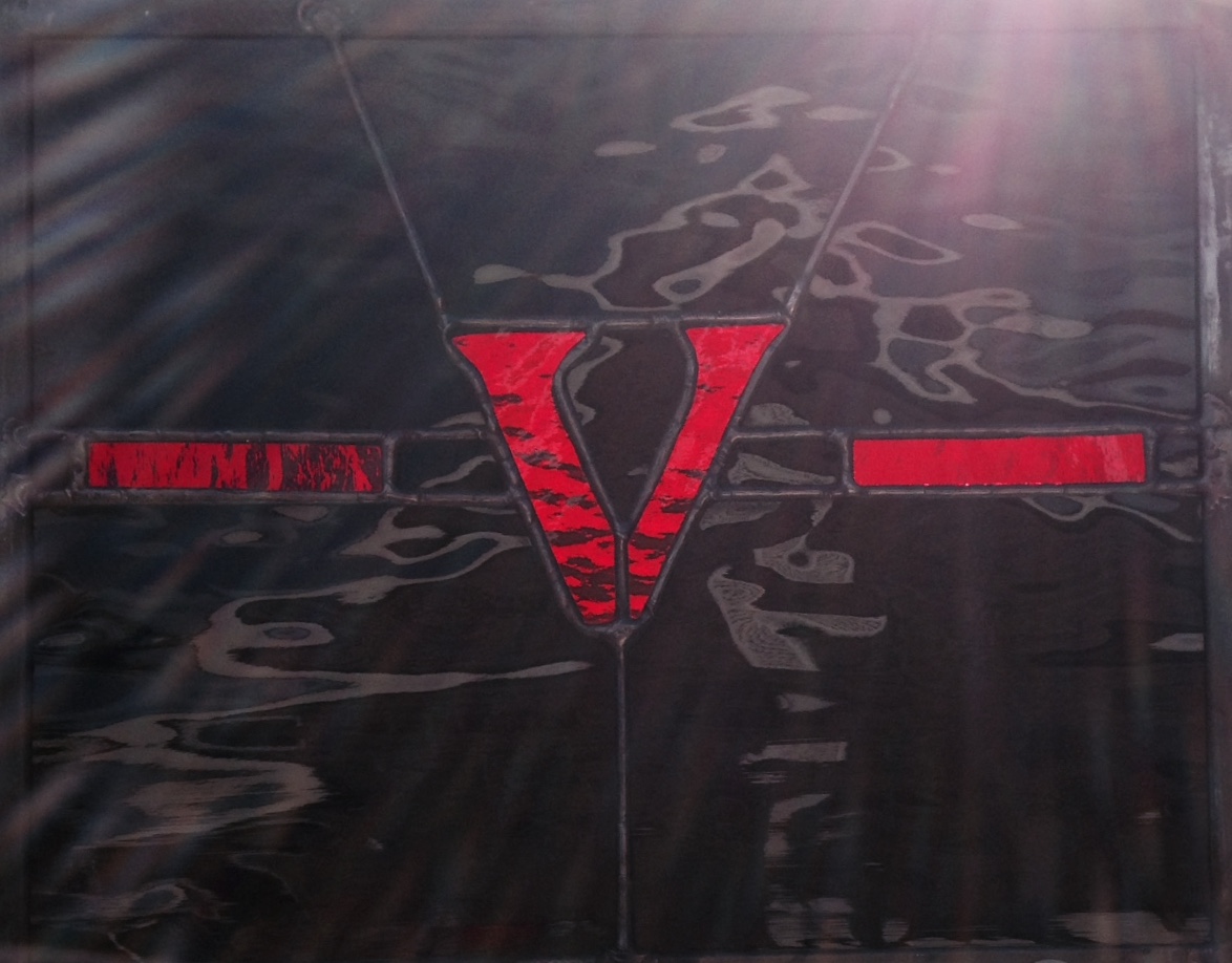 This entry was posted on October 2, 2014 by alliekayglass. It was filed under Customized Glass, Stained Glass and was tagged with Bar, black, Brand, Hammered, Red, V, Waterglass.