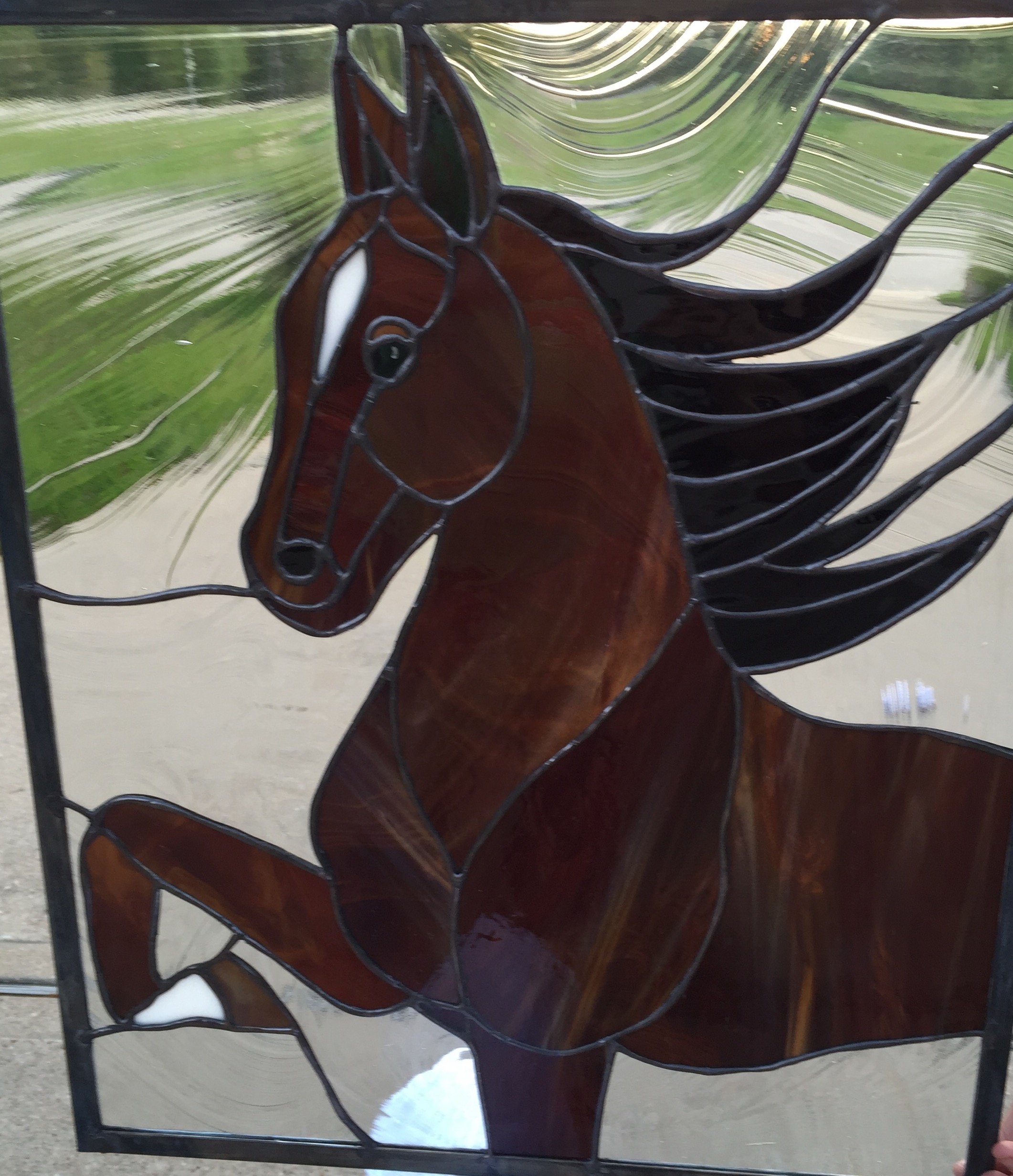 This entry was posted on April 2, 2015 by alliekayglass. It was filed under Customized Glass, Stained Glass and was tagged with black, brown, horse, Streaked, Waterglass.