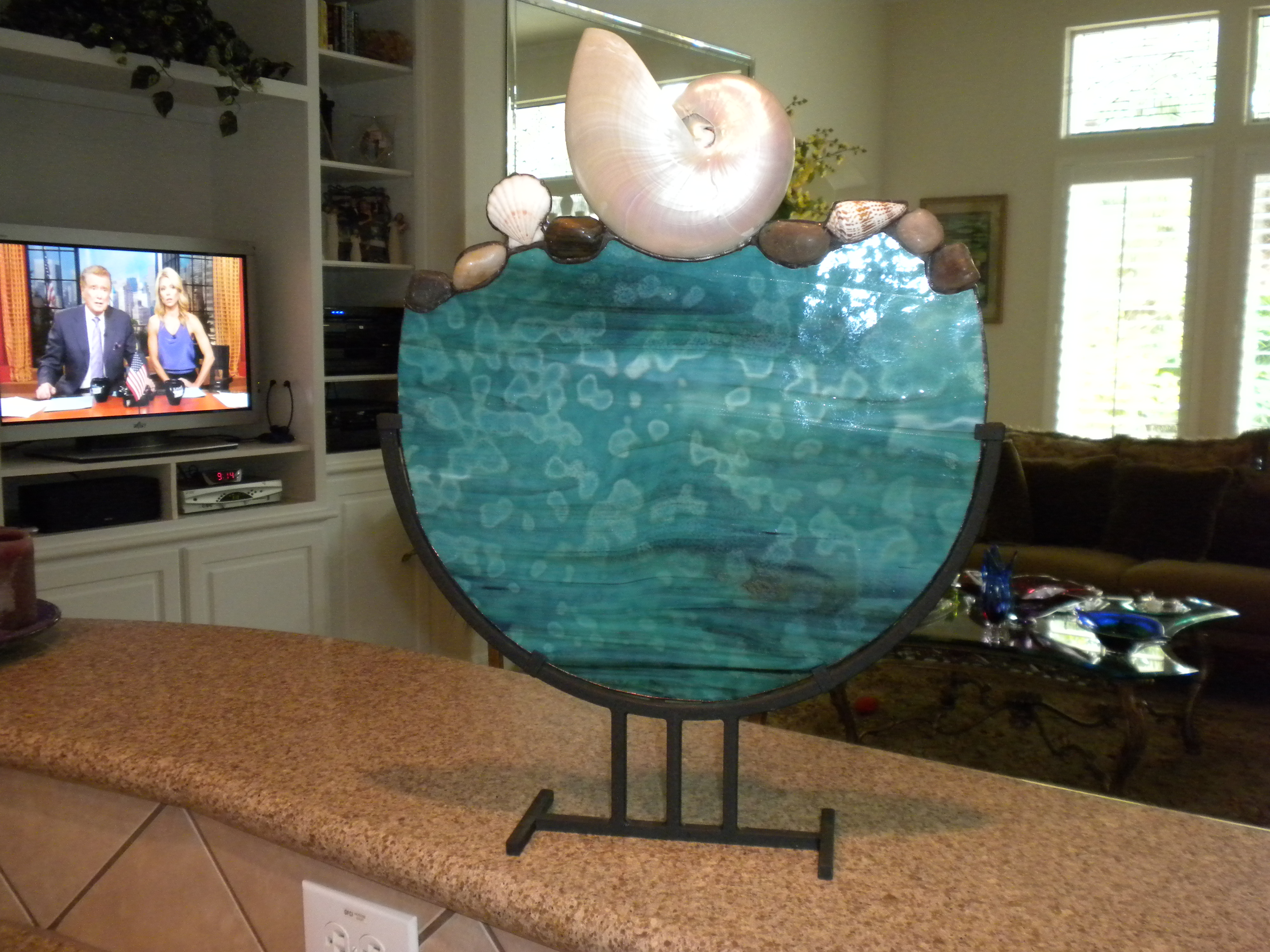 December 18, 2019 | Categories: Sea Shells and Stained Glass, Stained Glass, Warm Glass | Tags: seashells blue white glass metal base | Leave a comment