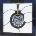 The Citadel. Measures approximately 18″ x 18″. Made with blue, gray and white glass. For more information call (713) 899-0933!
