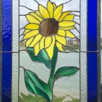 Beautiful stained glass sunflower! Made with beautiful yellows, browns and greens. Measures approximately 23″ x 14-1/2″. For more information call (713) 899-0933!