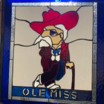 Ole Miss Rebel Logo. Measures approximately 23 x 18. Made with beautiful reds, blues, black and clear. For more information call (713) 899-0933!