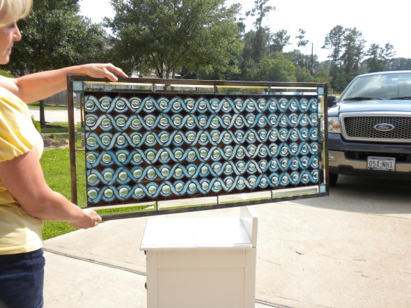 This is a window that came out of a 100 year old house that my Brother is redoing. I made this to surprise him out of the old window!!! Just goes to show you can make beautiful stained glass pieces out of just about anything!!! For more information please call (713) 899-0933!!!