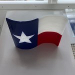 Texas Flag measures approximately 10″ x 9″, Made with bright red and blue and white glass.